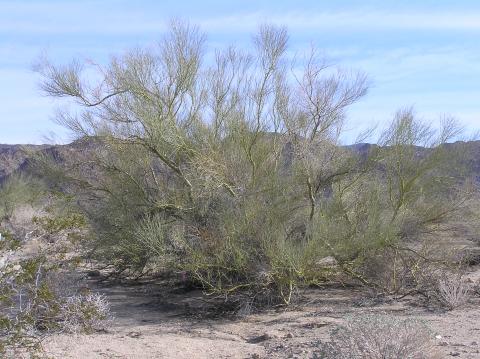 Appearing in patches in great enough densities, another tree forming a shrubland alliance in the greater wash system is the smoketree (Psorothamn
